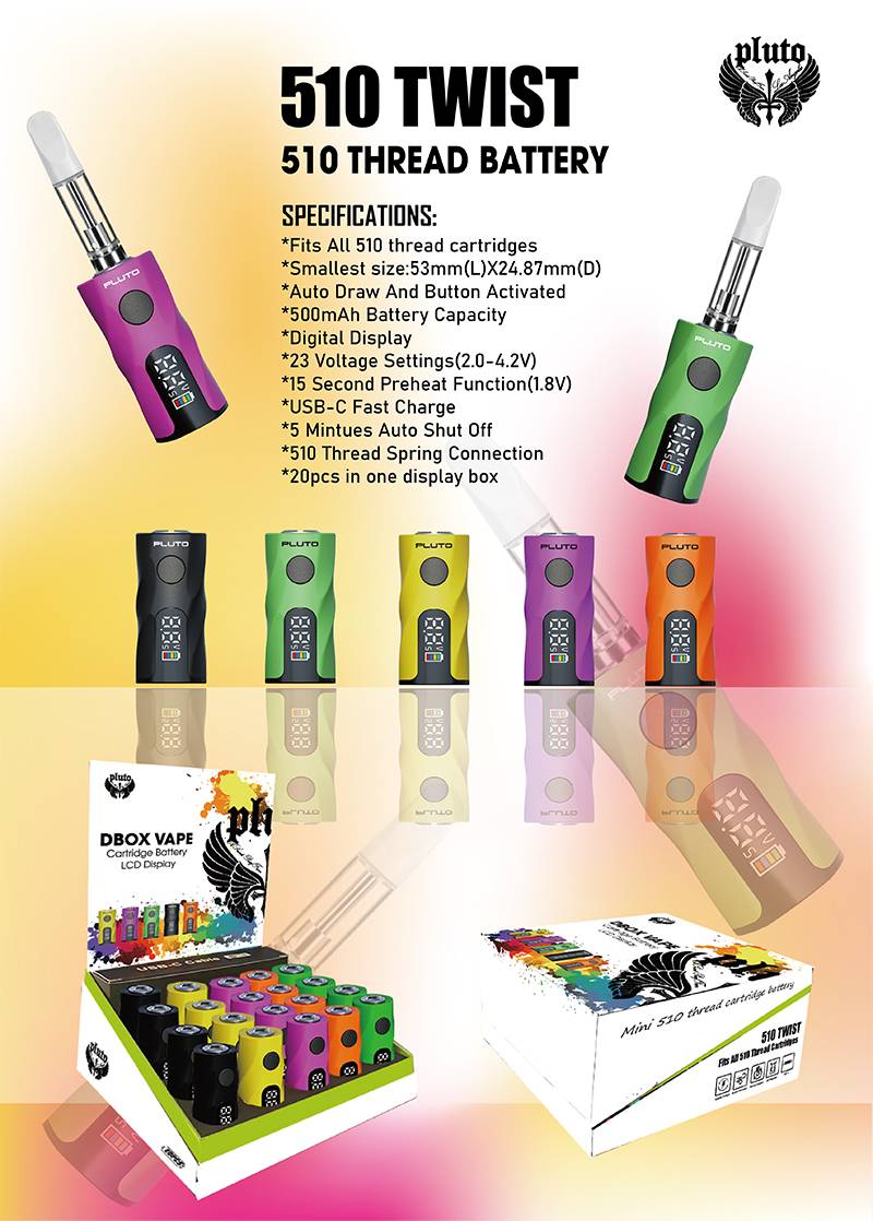 Small 510 thread lcd battery PLUTO DBOX