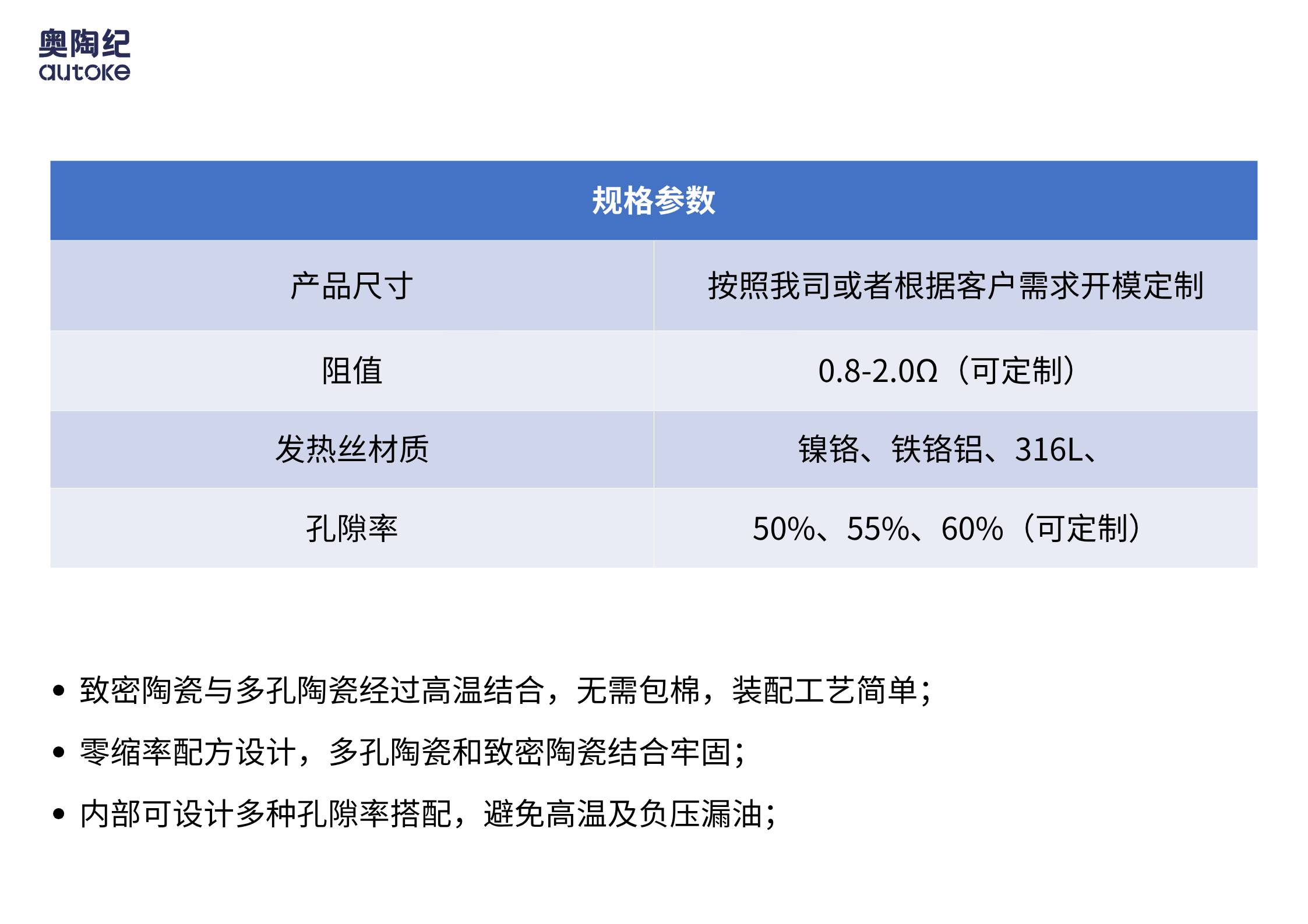 致密陶瓷与多孔陶瓷经过高温结合,无需包棉,装配工艺简单